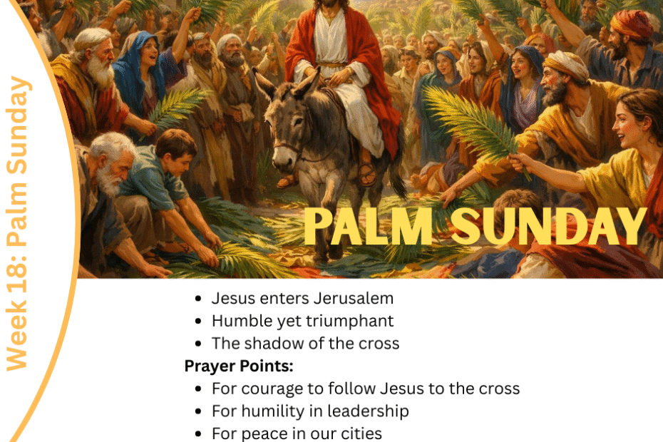 Week 18 Cycle of Prayer: Palm SundayCycle of PrayerMarch 30, 2026Week 18 Cycle of Prayer: Palm Sunday This is the weekly cycle of prayer for 30th March. Leave a Reply Cancel replyYour email address will not be published. Required fields are marked *Name * Email * Website Comment * Save my name, email, and website in this browser for the next time I comment. Δ